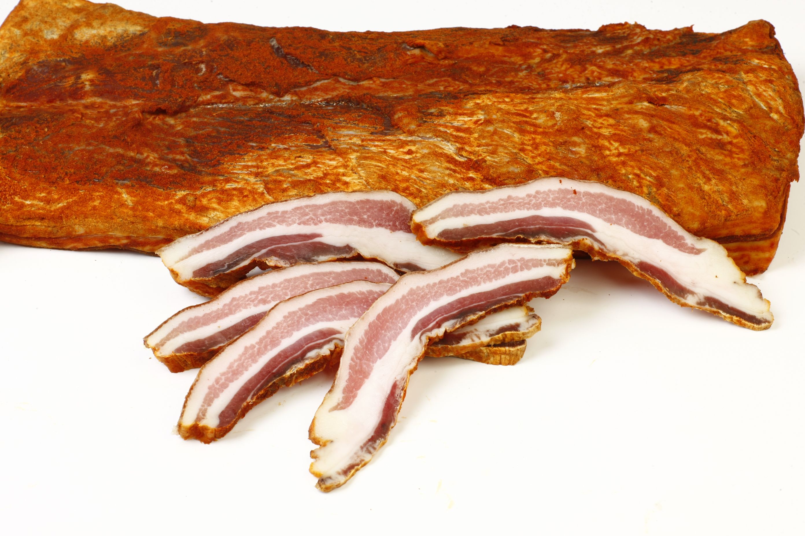 La panceta curada  adobada siguiendo la tradición de la zona, se elabora con ingredientes sólo naturales, ajo, pimentón, orégano, sal y curada con leña de encina.